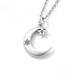 LOVKR Silver Half-Moon & Star Pendant with Blue Topaz