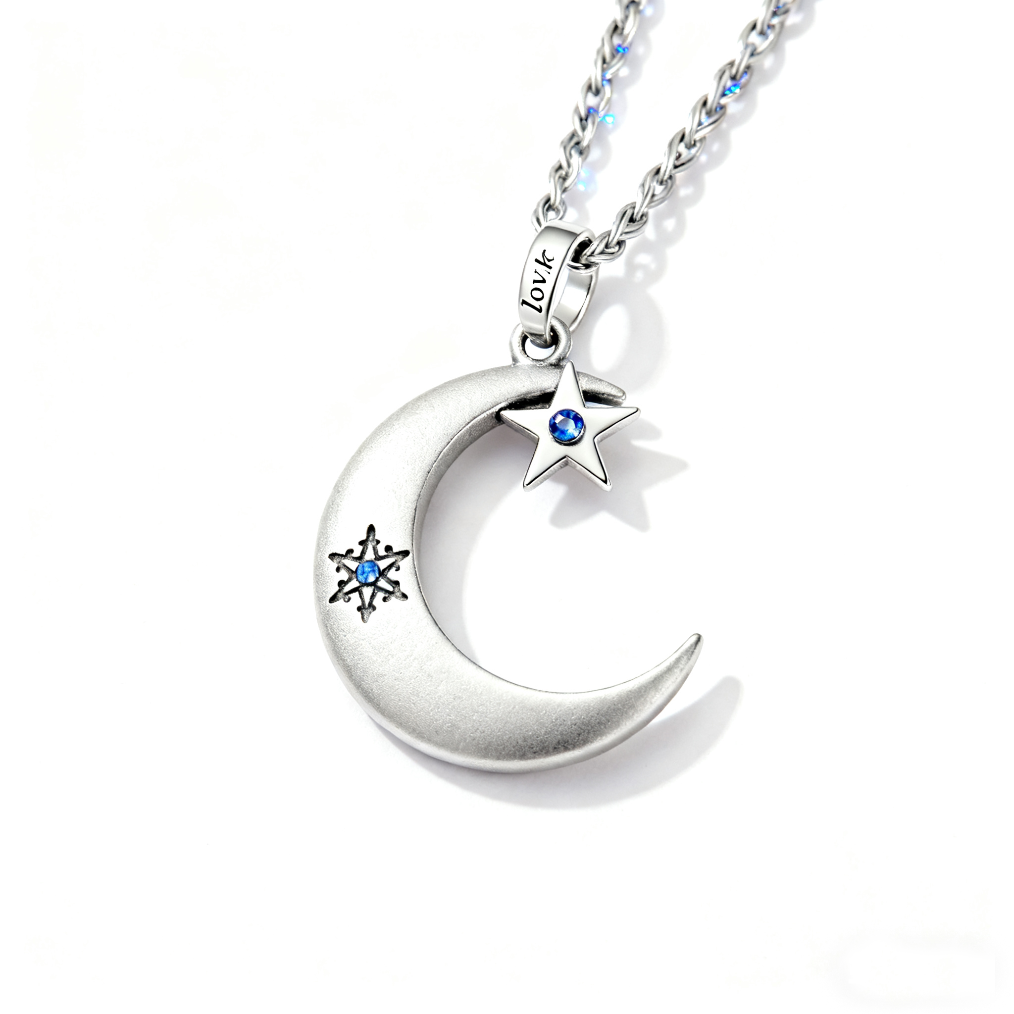 Be the first to review “LOVKR Silver Half-Moon & Star Pendant with Blue Topaz”
